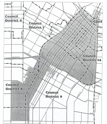 (1) The Central City Community Plan Area as shown on the General Plan of the City of Los Angeles; and